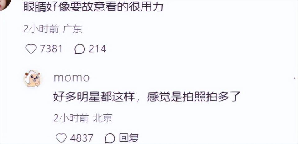 虽说眼神问题依然没得到有效的解决,她这次的皮肤倒是很紧致,一点干瘪感都没有,评论区都是一水儿的夸。