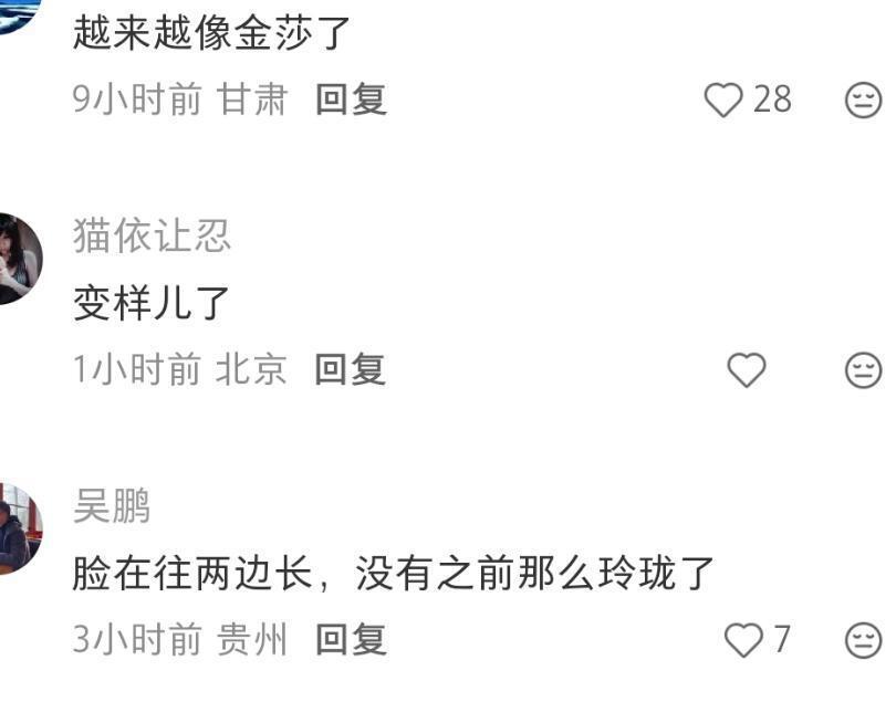 她的眼型、脸型也变了,变成了细长的眼型,看着和莫文蔚、金莎等长脸女星格外相似,跟她以前的气质全然不相像。