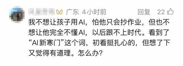 (千问公众号标题截图)这缘起于1月21日千问掀起“孩子到底能不能用AI”的教育大讨论。期间,戴建业、“水哥”王昱珩、六神磊磊、沈奕斐、储殷等教育大咖激辩AI时代下的教育,其中,AI时代的教育是否进一步导致阶层分化鸿泰利创,引发较大关注。有家长在千问官方账号下留言鸿泰利创,“看到了‘AI新寒门’这个词鸿泰利创,初看挺扎心的鸿泰利创,但想了下又觉得有道理。怎么办?”对AI时代的教育,表达出深深焦虑。